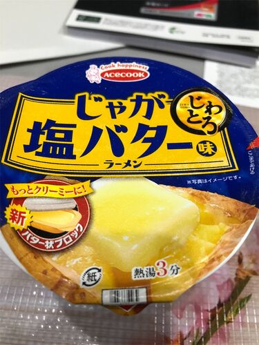 んちゃ✋ エースコック じゃが塩バター味 エースコックさんの『じわとろ塩じゃがバター味ラーメン』をいただきました。 前に食べた飲み干す一杯の『味噌バター味ラーメン』に似ています。 www.nobusan.work 実食 すでにお湯を入れた後のパッケージです。 バタ…